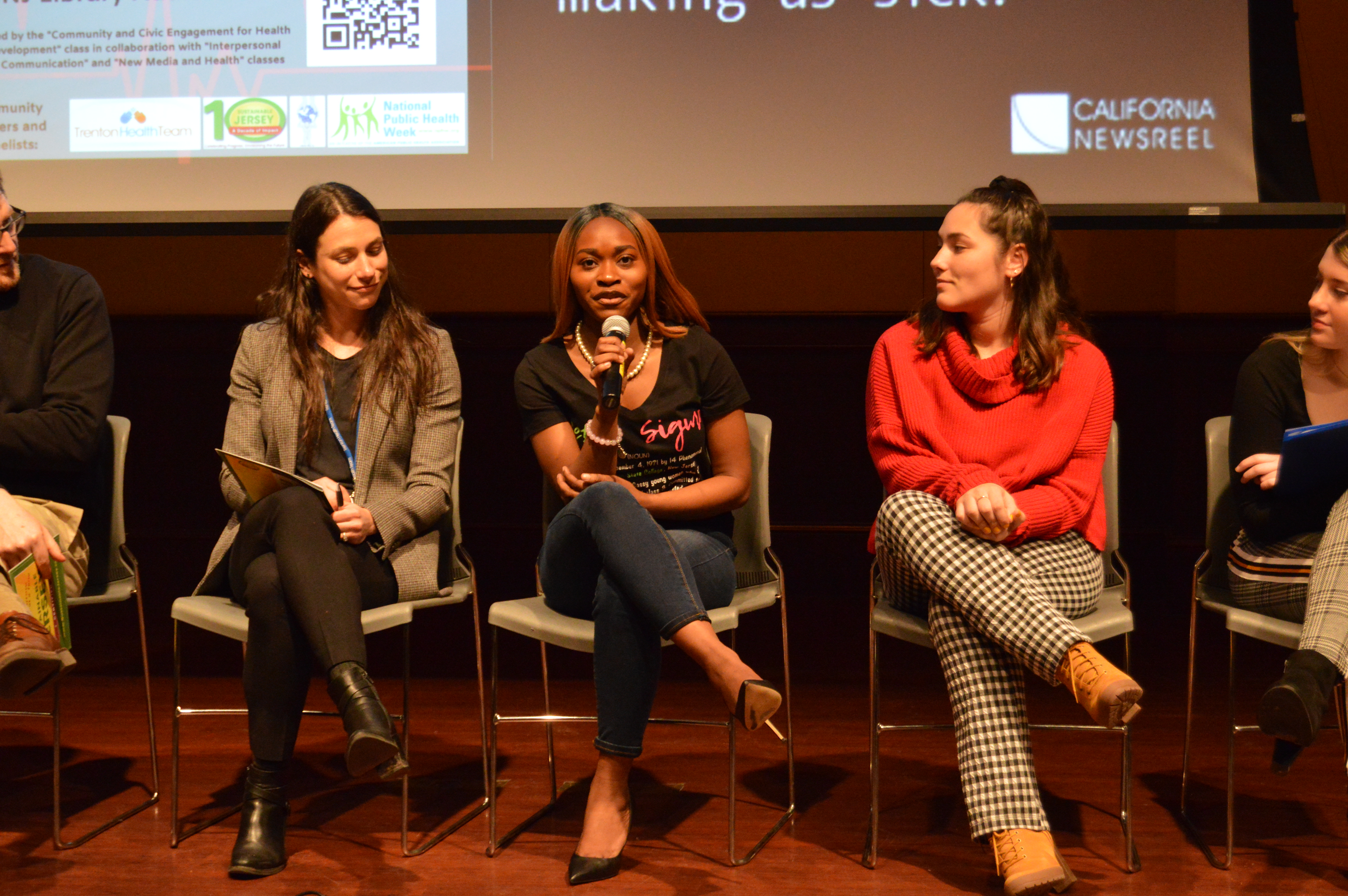 The event was the result of an extraordinary collaboration that engaged students from three courses at The College of New Jersey: COM 370-08 “Community and Civic Engagement for Health and Development,” COM 370-02 “Interpersonal Health Communication,” and COM 345 “New Media and Health Communication” (all three courses shared by the Communication Studies and Public Health departments). The event was entirely student-facilitated and was attended by 61 people: 30 students, 6 faculty members, and 25 community members. This was a first-of-its kind event at TCNJ, bringing together students, faculty, administrators, community organizations, and many community members from surrounding towns.