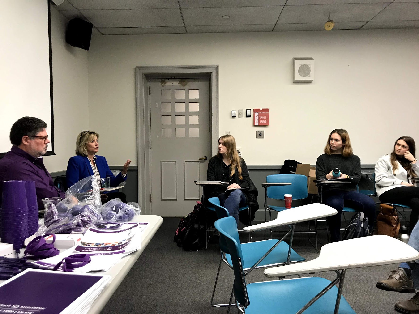 Dr. Yifeng Hu’s COM 345 – New Media and Health Communication class hosted Jeff Borghoff and Katrien Goethals as guest speakers on February 11, 2020. Diagnosed with Younger Onset Alzheimer’s Disease at age 51, Jeff is an alumni member of the National Early-Stage Advisory Group. Borghoff also works closely with the National Alzheimer’s Association and is a staunch advocate for Alzheimer’s research and awareness. Borghoff spoke to the class about life with dementia, policy for both patients and caregivers, research, and destigmitzarion.
